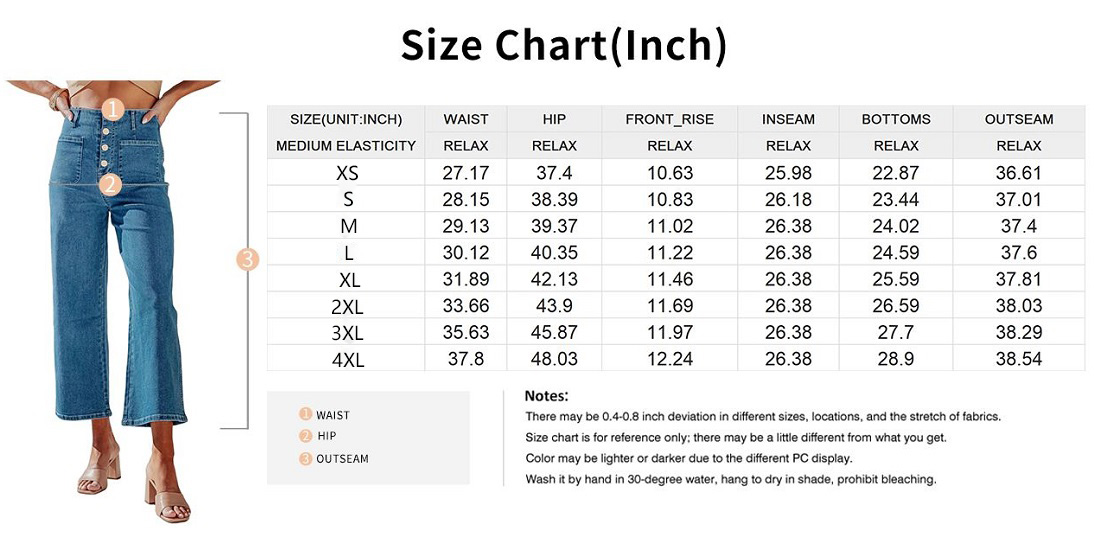 - The unique design of wide-leg jeans: High waisted breasted jean makes your waist smaller, and loose, straight legged pants make you more comfortable.