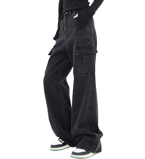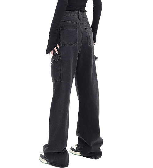 - Retro streetwear black cargo baggy jeans style always follow popular trending to modern young womens,girls,juniors,lady.